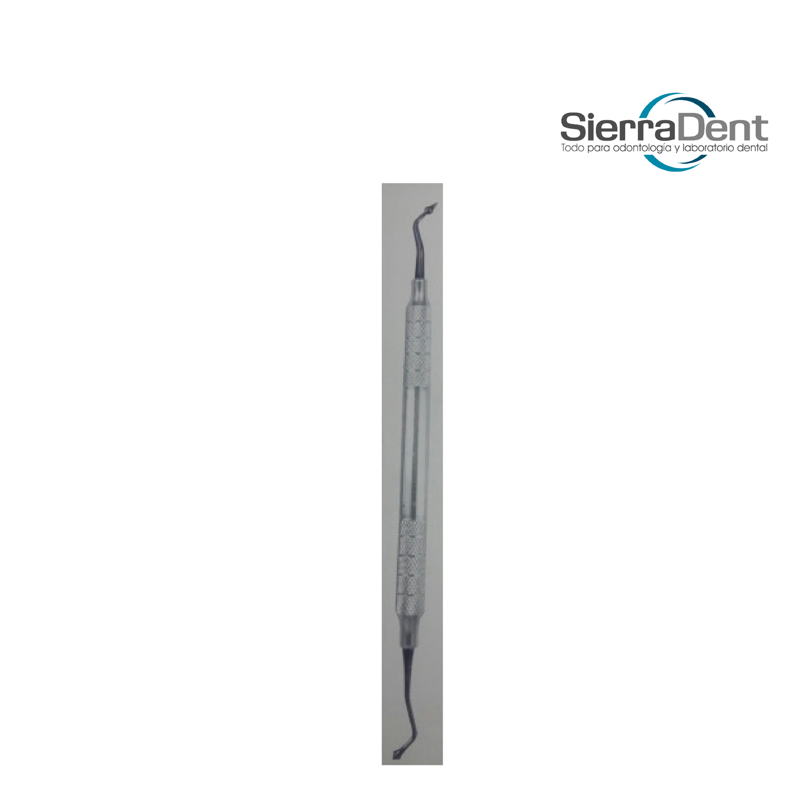 Espátula con forma especial tipo “cabeza de pato”, diseñada para esculpir resinas con máxima precisión en zonas posteriores e interproximales.