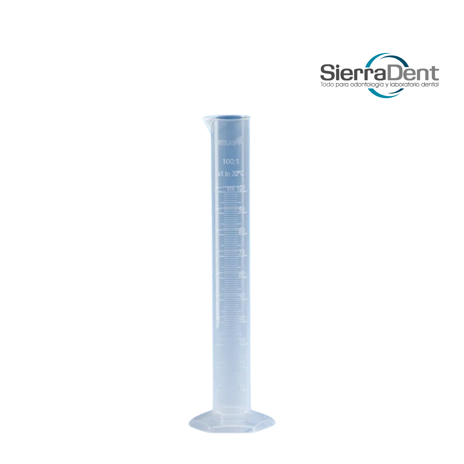 Probeta graduada en plástico transparente de alta resistencia, con escala aforada para mediciones precisas de líquidos. Capacidad de 100 ml. Ideal para laboratorios clínicos, dentales o escolares. Fácil de lavar y reutilizable.